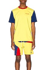 Aime Leon Dore Color Blocked Logo Tee in Highlighter Yellow