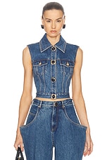 AREA Gemstone Button Denim Gilet in Medium Blue