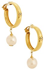 FWRD Renew Chanel 1990 CC Pearl Clip-On Hoop Earrings in Gold