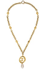 FWRD Renew Chanel CC Pearl Swing Necklace in Gold