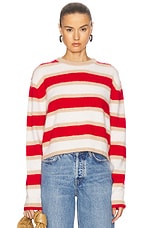 Guest In Residence Grizzly Stripe Crew Sweater in Dune, True Red & Cream