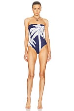 Johanna Ortiz Alta Mar One Piece Swimsuit in Swim Salty Palms Blue & Ecru