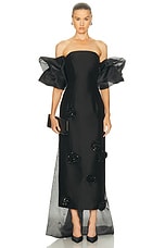 Alex Perry Strapless Curved Corset Drape Gown in Black