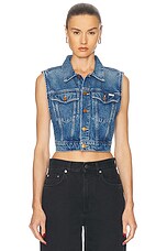 Saint Laurent Cropped Sleeveless Denim Shirt in Dusty Medium Vintage