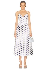 NICHOLAS Becker Princess Waist Midi Dress in Ivory Navy Polka Dot