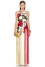 Oscar de la Renta Halter Neck Embroidered Gown in Ecru & Multi
