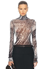 SKIMS Milky Sheer Mock Neck Long Sleeve Bodysuit in Sand Multi Animal