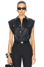 Saint Laurent Cropped Sleeveless Denim Shirt in Dusty Medium Vintage