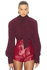 Rowen Rose Tie Neck Blouse in Bordeaux