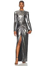 AREA Draped Long Sleeve Gown in Black