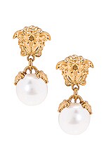 VERSACE Medusa Pearl Drop Earrings in Oro & Bianco