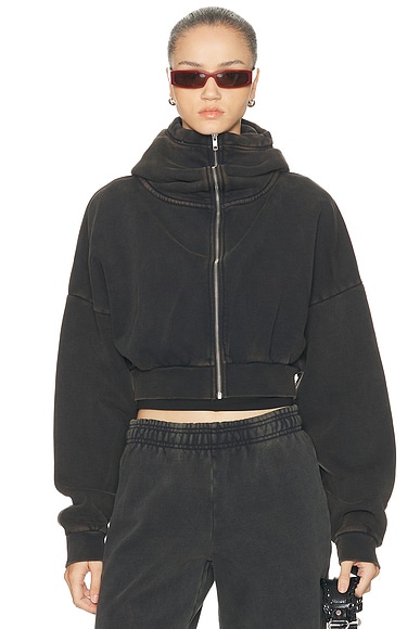 Entire Studios Cropped Full Zip Jacket in Washed Black