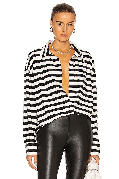 Norma Kamali Short Oversized Boyfriend NK Shirt in 3/4 Stripe
