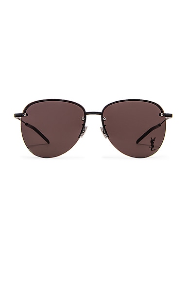 Saint Laurent Metal Pilot Sunglasses in Semimatte Black