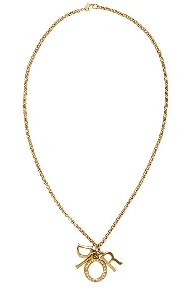 FWRD Renew Dior Rhinestone Necklace in Gold