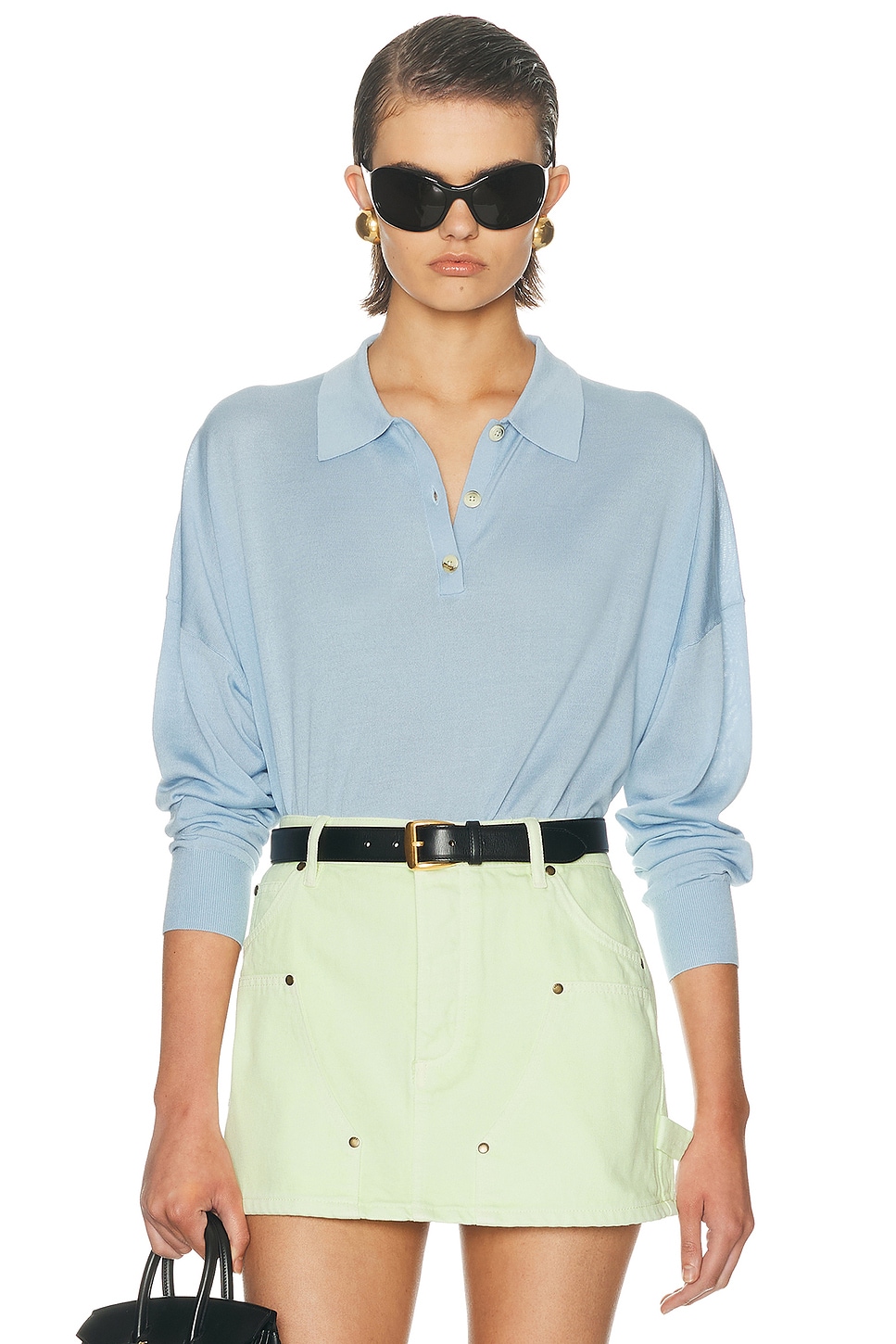 Silk Cashmere Boxy Long Sleeve Polo Top